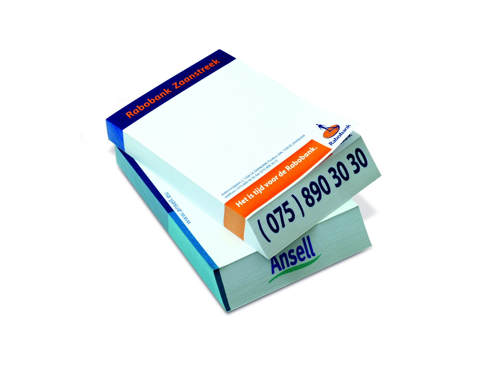 De voorzijde van het Topblok heeft schuine kant die door de afloop van de bedrukking is gesneden, zo blijft de tekst volledig leesbaar t/m het laatste blad. Het Topblok is gemaakt van 90 grams wit papier, gelijmd op een 300 grams wit onderkarton en verkrijgbaar in 2 hoogtes.