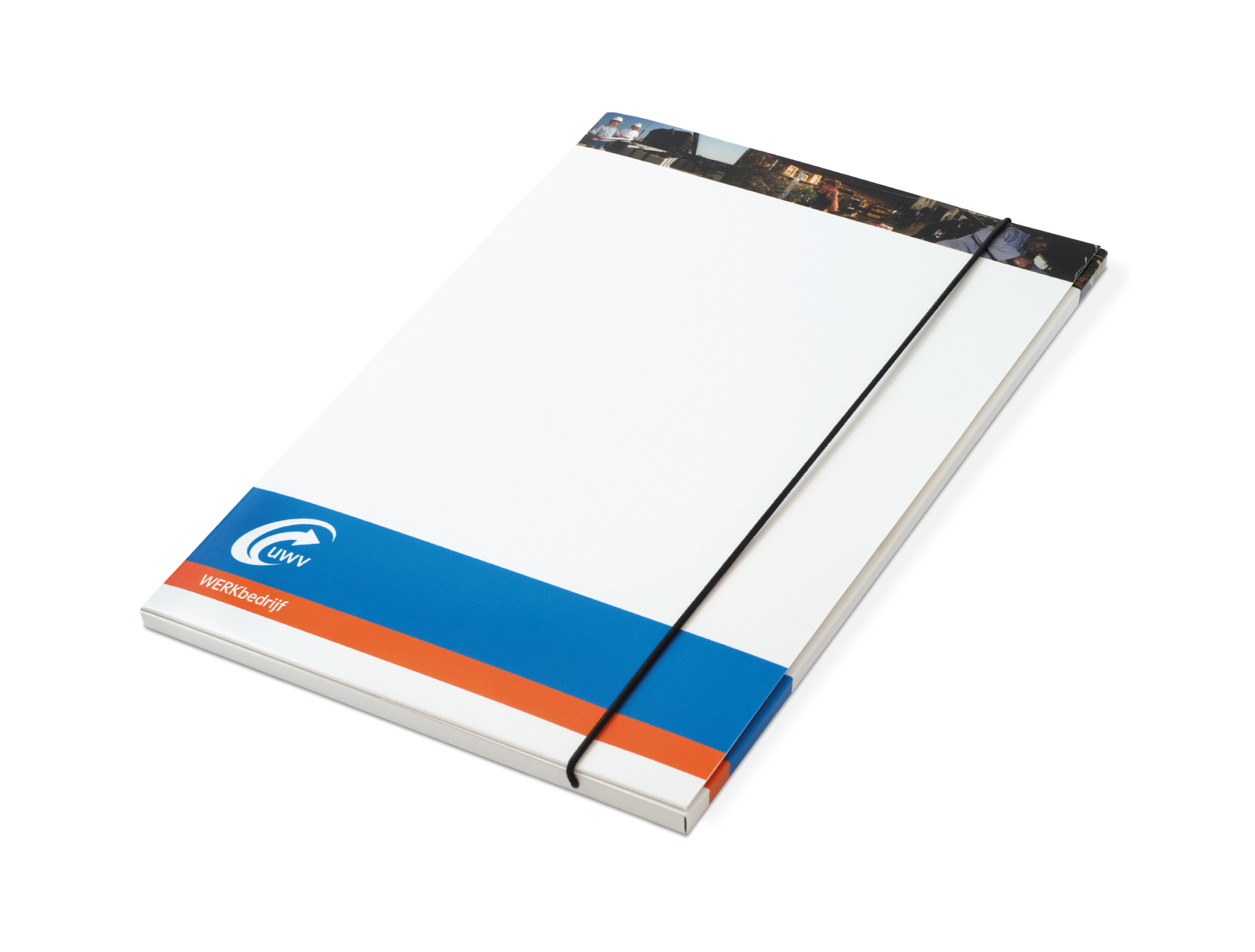 A4-presentatiemap met een sluit elastiek. De map van 350 grams glansgelamineerd karton heeft ook een ruim extra insteekvak aan de binnenzijde van het voorplat. Deze bijzonder mooie presentatiemap wordt geplakt en gevouwen geleverd!